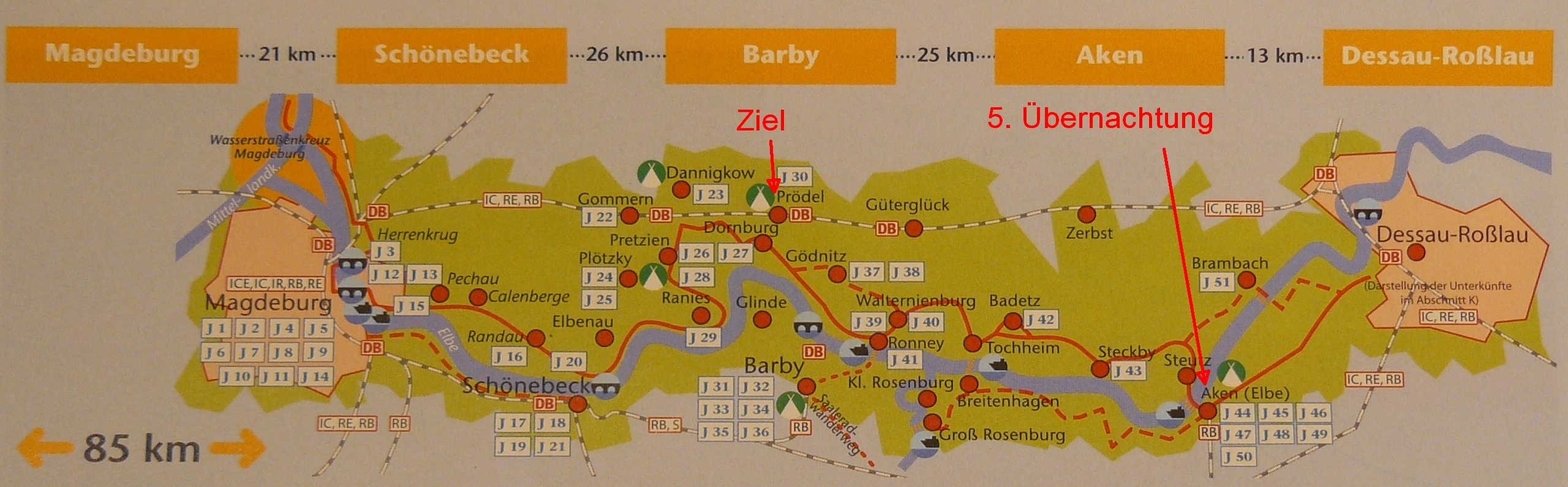 5. Etappe: von Wittenberg wegen Hochwasser linkselbisch über Dessau nach Aken