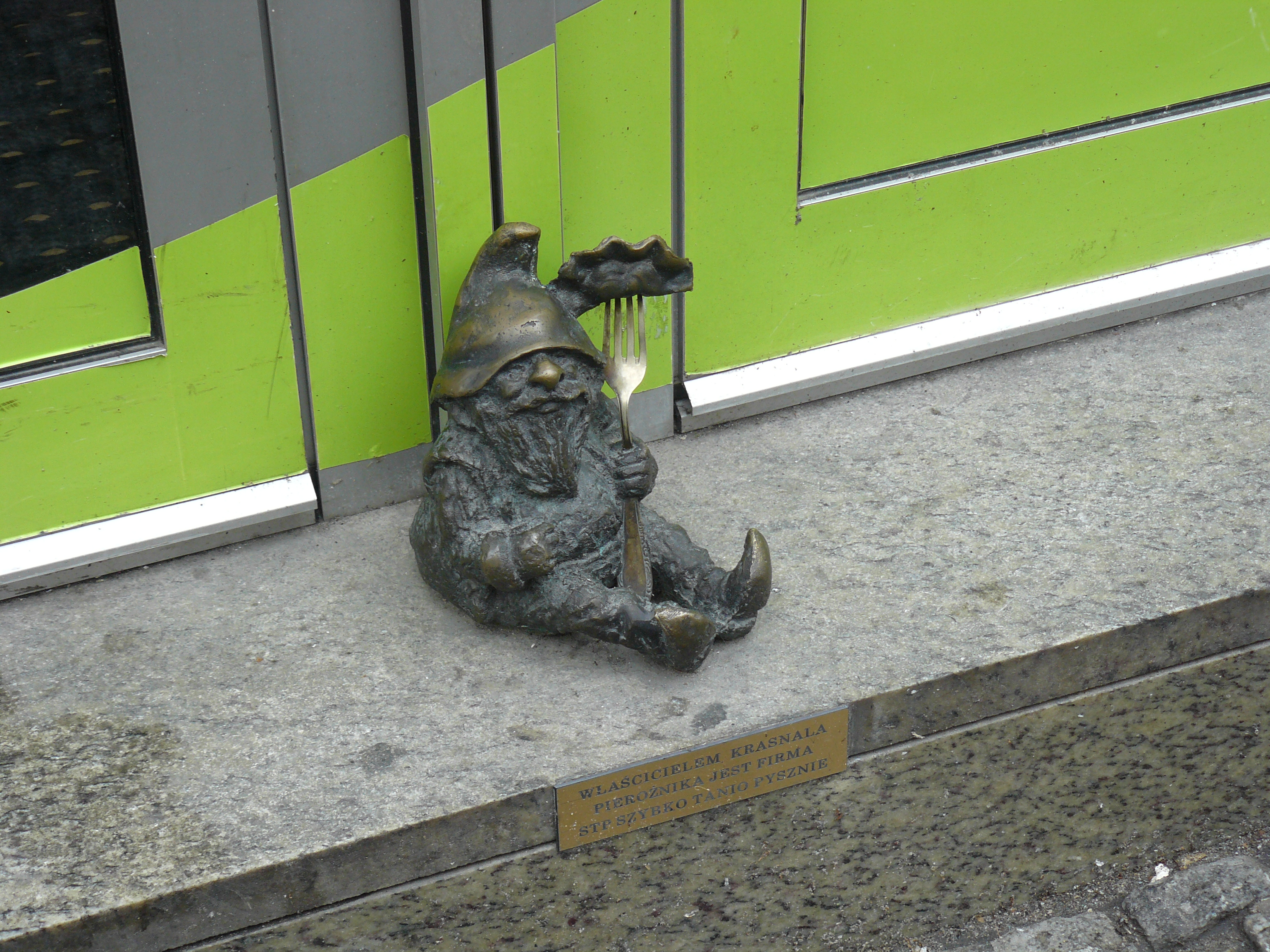 Piroggen-Zwerg vor einem Imbiss im Studentenviertel