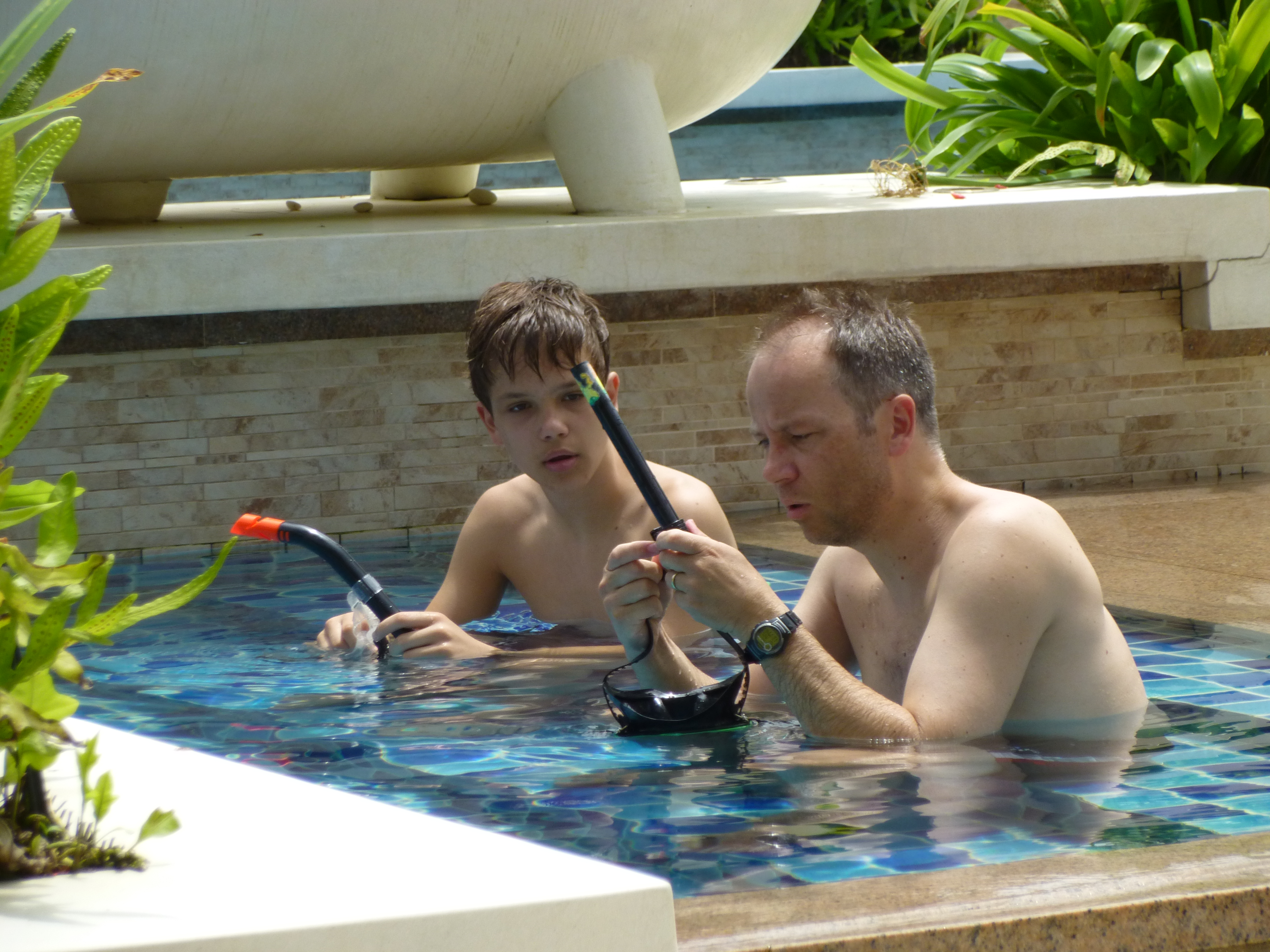 Wir üben im Pool schnorcheln.