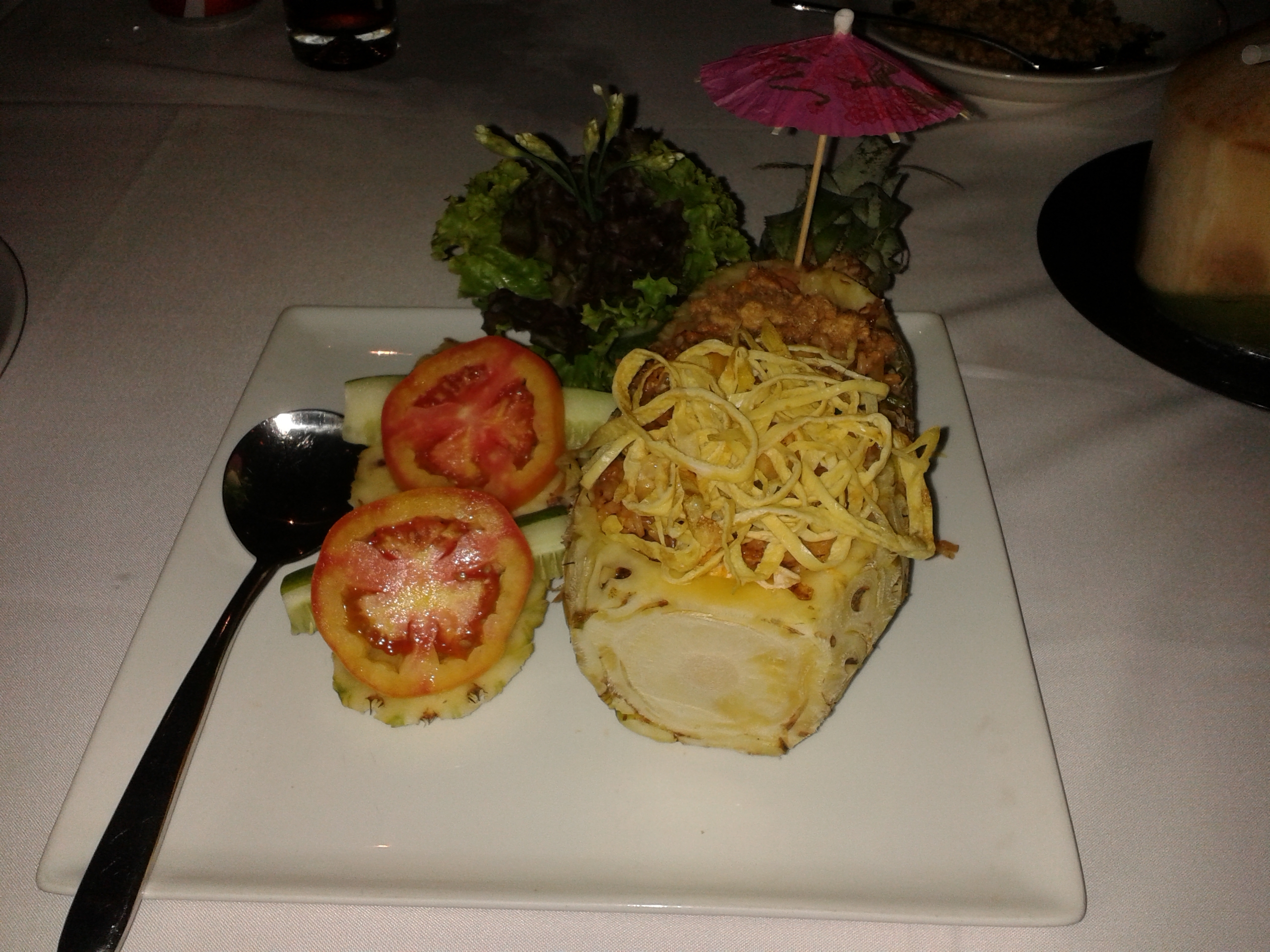 Nudeln in der Ananas serviert