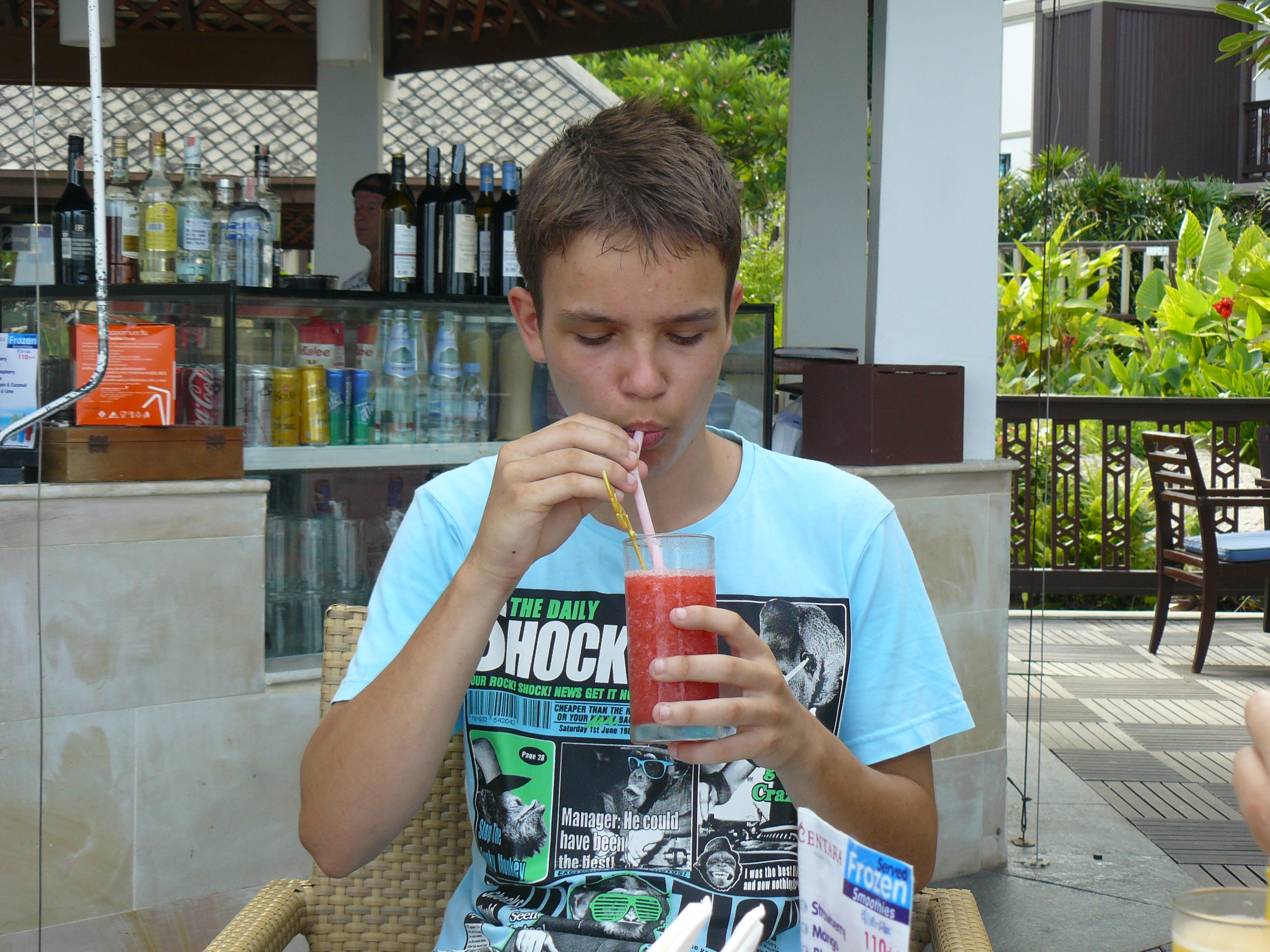 Für den Eintritt im Butterfly-Garden gab es einen Gutschein "Buy one-get one free" für die benachbarte Hotelbar. Wir gönnten uns leckere Smoothies.