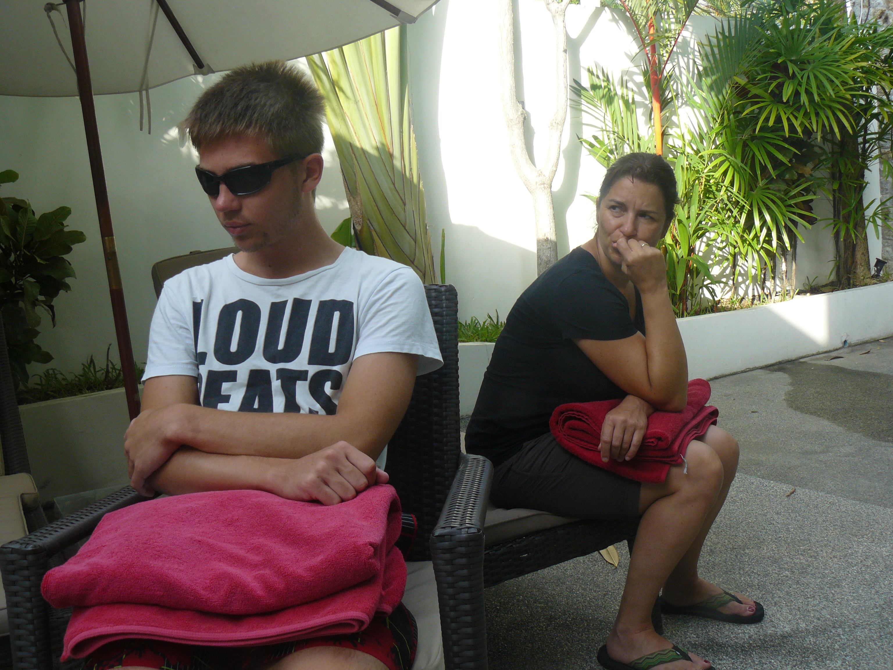 Heute fahren wir schnorcheln! Warten auf den Shuttle-Bus, der uns zum Hafen bringen soll.